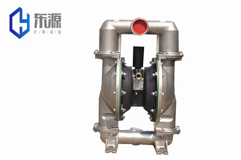 在不銹鋼隔膜泵的兩個對稱工作腔中,各裝有一塊有彈性的隔膜6,聯桿將兩塊隔膜結成一體,壓縮空氣從泵的進氣接頭1進入配氣閥3后,推動兩個工作腔內的隔膜,驅使聯桿聯接的兩塊隔膜同步運動。與此同時,另一工作腔中的氣體則從隔膜的背后排出泵外。一旦到達行程終點。配氣機構則自動地將壓縮空氣引入另一個工作腔,推動隔膜朝相反方向運動,這樣就形成了兩個隔膜的同步往復運動。每個工作腔中設置有兩個單向球閥4,隔膜的往復運動,造成工作腔內容積的改變,迫使兩個單向球閥交替地開啟和關閉,從而將液體連續地吸入和排出。